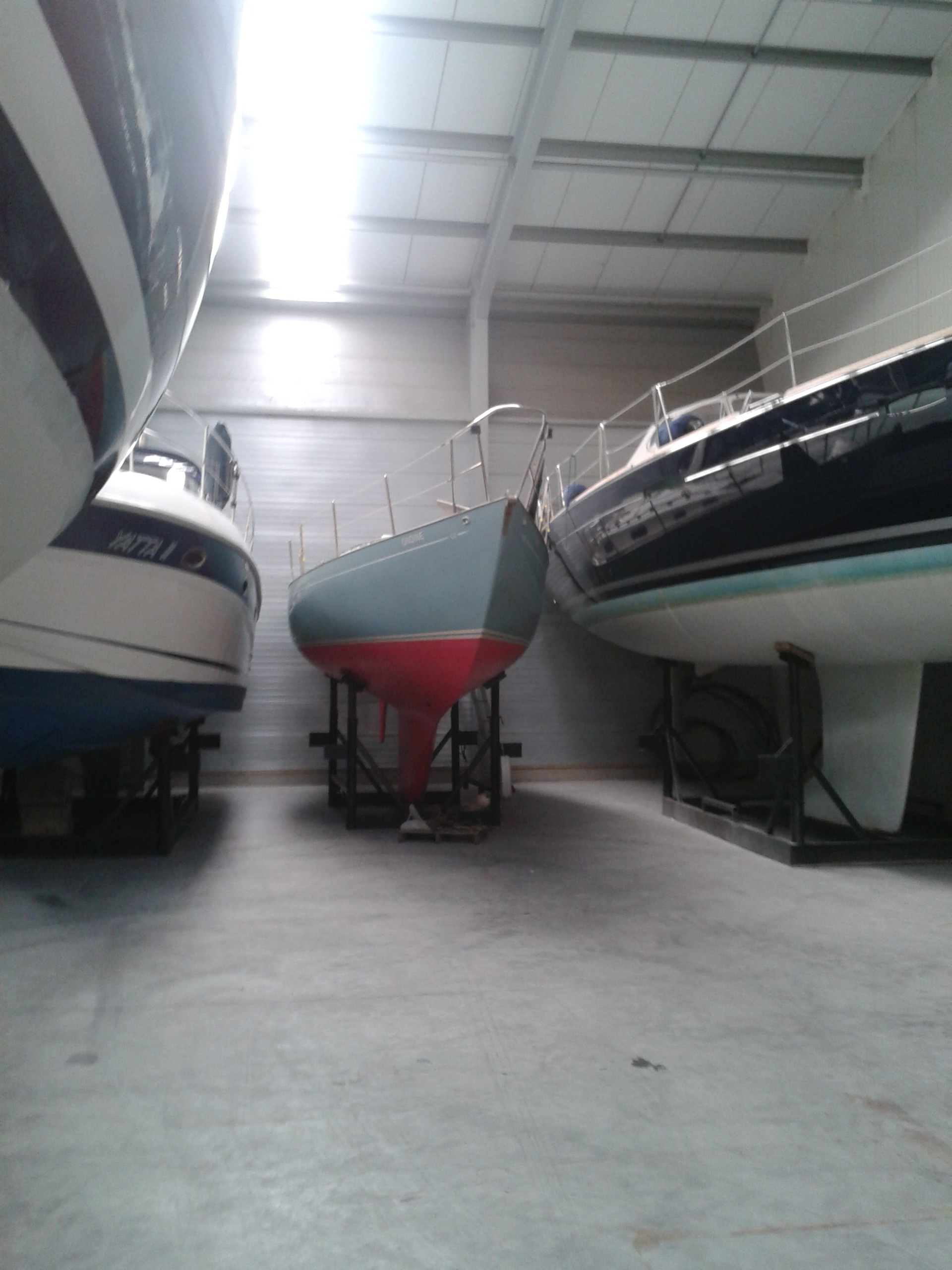 Sinds afgelopen donderdag staat Ondine binnen in de loods. Bij een aangename 15gr C en een licht zonnetje werd ze uit het water gelicht en werd de mast eraf gehaald. Een hele lijst met klussen is gemaakt en zaterdag j.l. maar meteen begonnen. Eerst de auto vol met zeilen, kussen, zeilkleding en alles wat niet noodzakelijk aan boord moest blijven. Daarna meteen begonnen met het demonteren van één van de ramen die lekte en de twee luiken. Nadat ik vorig jaar veel problemen had gehad met de demontage van de lieren zag ik hier nogal tegenop, maar het viel erg mee. De maten opgenomen en nu zoeken naar twee geschikte luiken.
