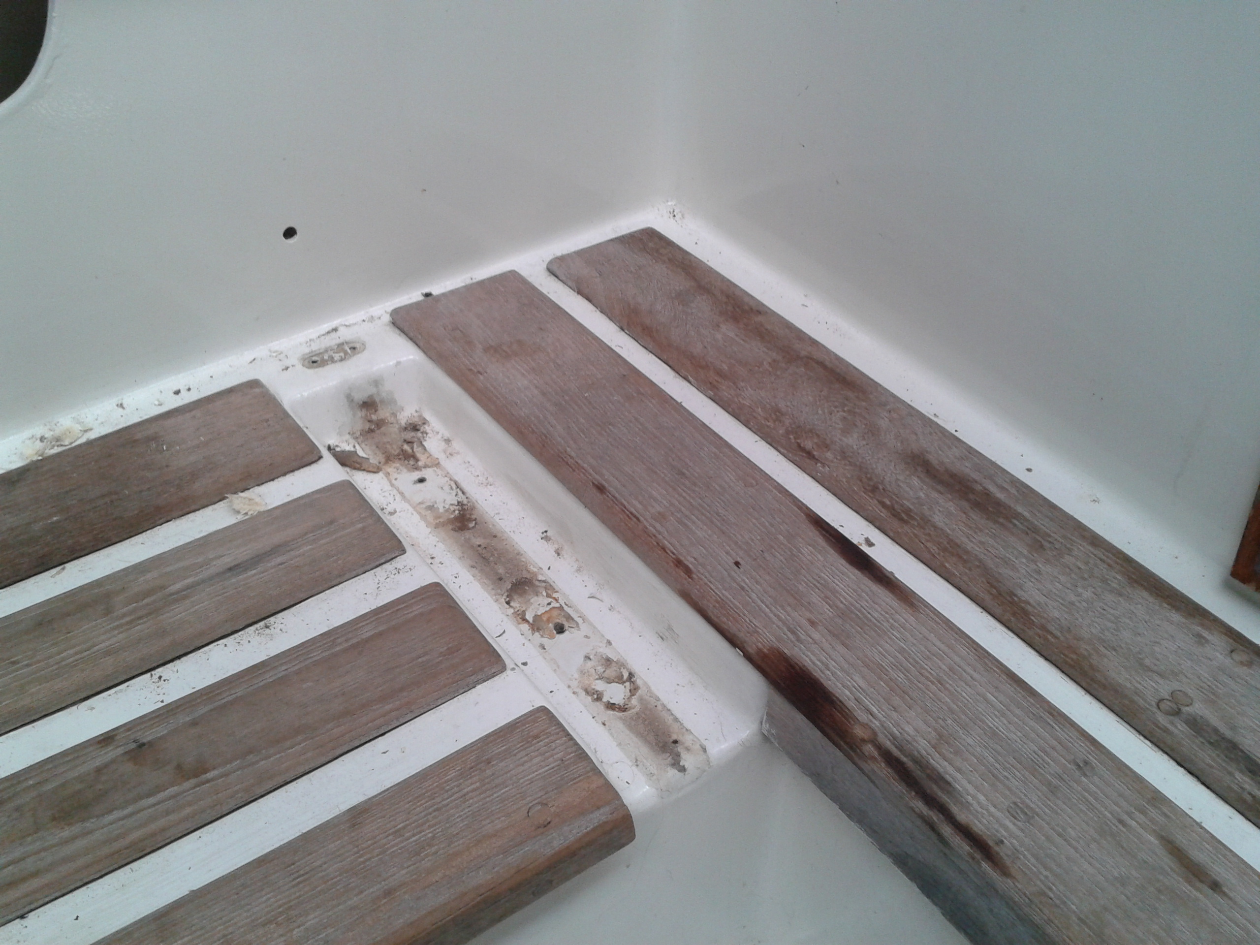 Vandaag een vrije dag opgenomen. Zaterdag was ik van plan de luiken te plaatsen, maar doordat de plamuur die ik had gebruikt om de gaatjes van de oude schroeven af te dichten nog niet droog was moest ik dat uistellen tot vandaag. Achteraf niet zo’n slecht plan, daar gaat toch weer meer tijd in zitten dan je denkt. Het is vooral moeilijk in te schatten hoeveel kit je moet gebruiken. Nu ik toch met de kitspuit bezig was ook de nieuwe valstoppers gemonteerd en het display van de stuurautomaat. Het houtwerk daarvoor had ik thuis voorbereid. Daarna begonnen aan de laatste grote klus, het toilet met de opbergruimte en de koelbox. De ingekorte plank van de opbergruimte teruggeplaatst en de mal voor de achterwand gemaakt. Kan ik thuis de plaatsen van de openingen bepalen. Volgende keer de mal van de vloer maken en dan naar de timmerman om de originele delen te laten maken.