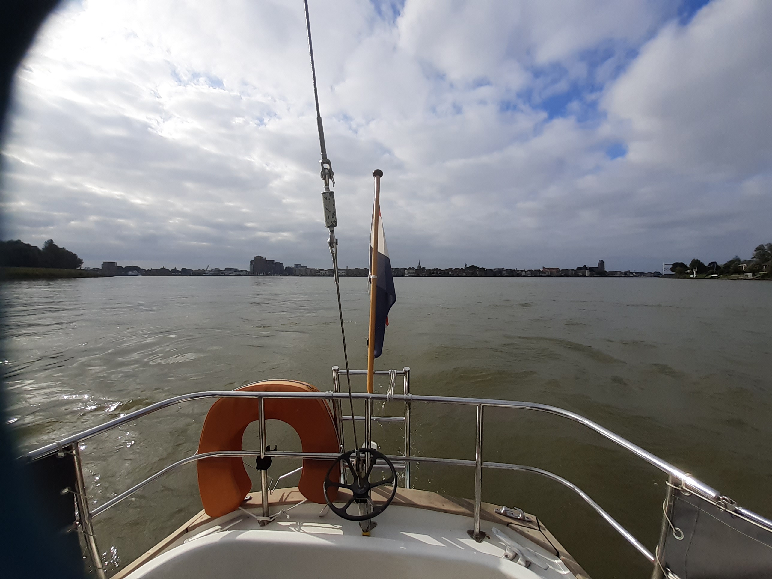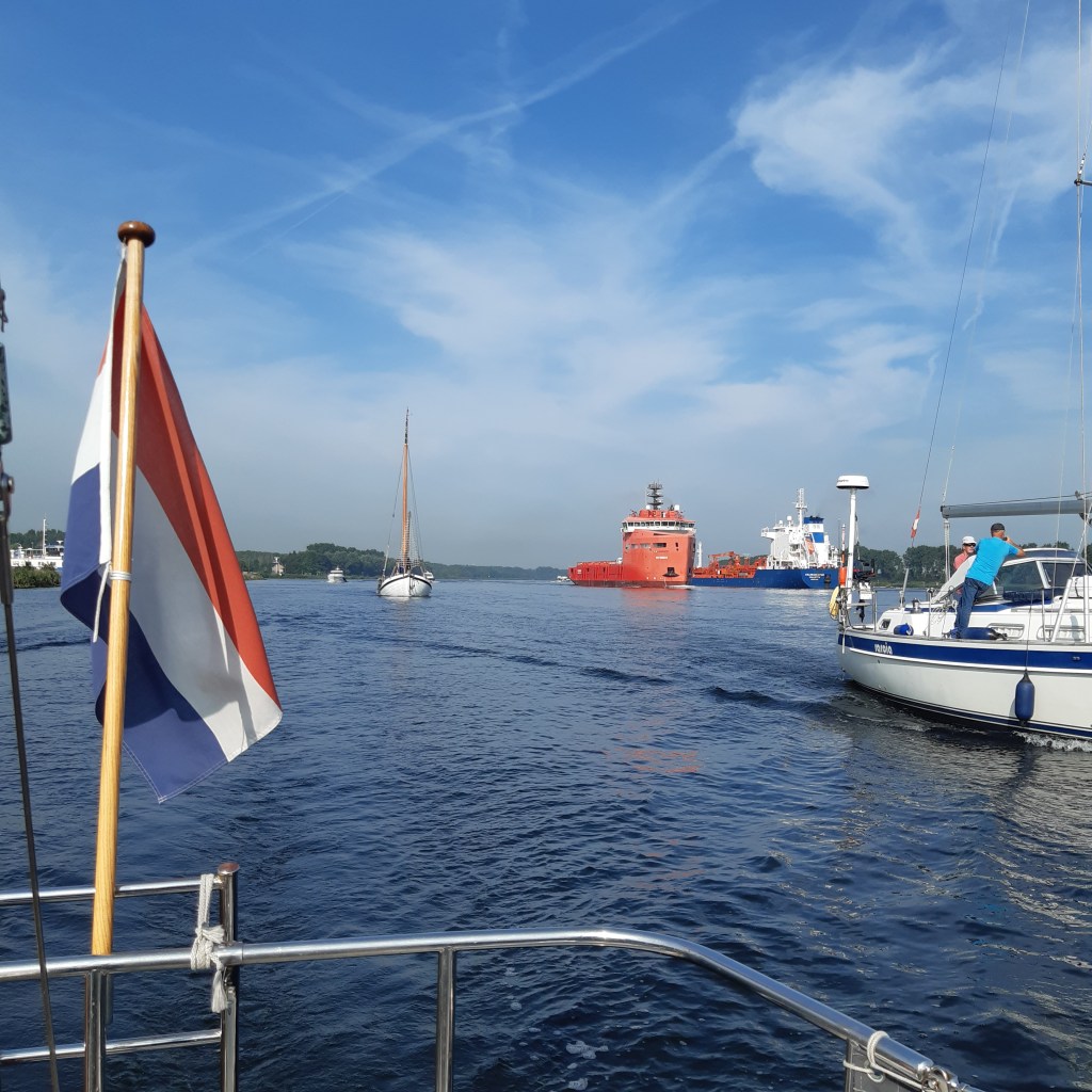 ’s Morgens bezoek gehad van een monteur van TCC om de koelcompressor na te zien. Regelunit vervangen. Oorzaak: te weinig ventilatie, compressor te heet geworden. Daarna vertrokken richting Dordrecht. Omdat de windverwachting voor de komende dagen ongunstig is, aanhoudend noord, hebben we besloten niet via de Noordzee, maar via de staande mastroute naar het noorden te varen. Eerste uur nog een klein beetje wind, maar nog voor Strijensas de motor gestart. Voor de spoorbrug afgemeerd aan de wachtsteiger en gegeten. Bij de eerste avondopening door de brug en daarna afgemeerd in de Wijnhaven.