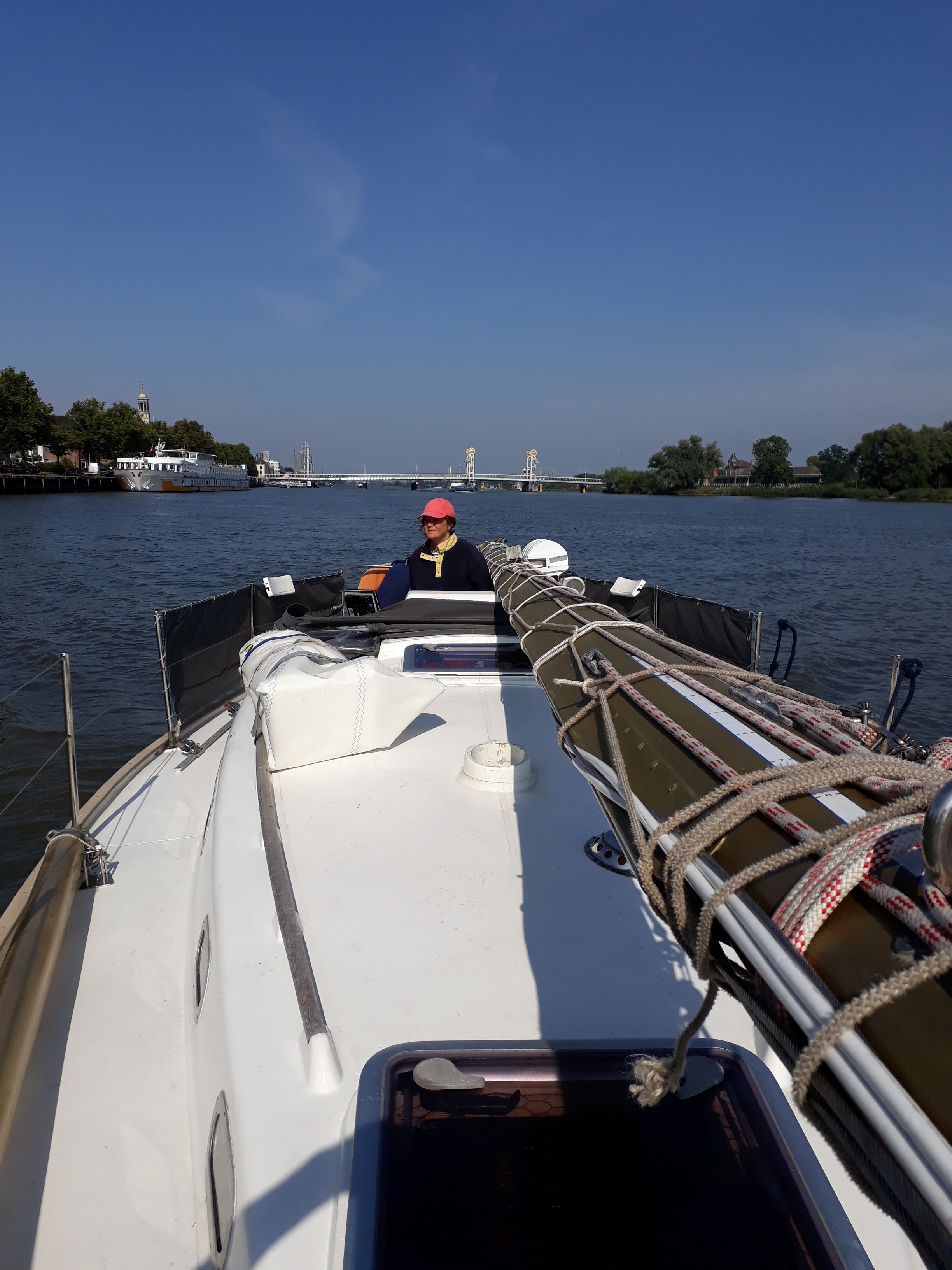 Mooi varen op de IJssel, maar met 1 kn tegenstroom schiet het natuurlijk niet echt op. Omdat Deventer onze woonplaats is leek het ons leuk daar ook 1 nacht te blijven in de verenigingshaven. `s avonds bezoek gehad van Sander en Jasmijn.