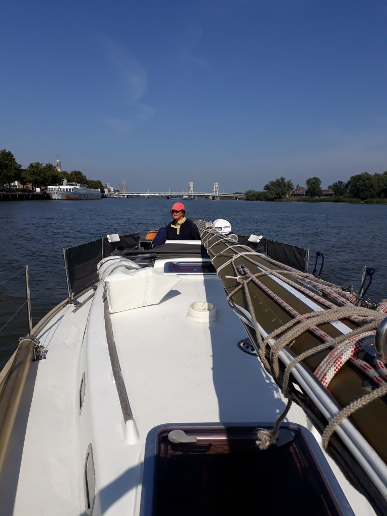 Weer een dag zonder wind. Toen we uit Lemmer vertrokken werden we ingelopen door een combinatie sleper/coaster. Kennelijk wordt er nog nieuwbouw gepleegd in Lemmer. Omdat het windstil was werden we de gehele dag geplaagd door vliegjes, die overal op gaan zitten. Buiten en binnen. Na de Ketelbrug op het ketelmeer nog even een uurtje kunnen zeilen. Daarna stroomopwaarts de IJssel op. In het begin ongeveer 1 kn stroom tegen. Afgemeerd in de verenigingshaven, ´s middags nog even naar de oude binnenstad en ´s avonds grootzeil en giek eraf gehaald en de verstaging los gemaakt.